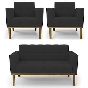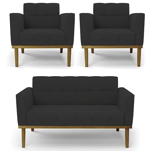 O Sofá Namoradeira e 2 Poltronas Base Madeira Castanho Ana Veludo Preto, da Ibiza é o conjunto ideal para quem busca beleza, conforto e versatilidade. Você pode usar na sua Sala De Estar, recepção ou qualquer outro ambiente que desejar.