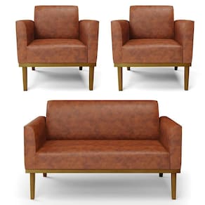 O Sofá Namoradeira e 2 Poltronas Base Madeira Castanho Maressa Sintético PU Nozes, da Ibiza é o conjunto ideal para quem busca beleza, conforto e versatilidade. Você pode usar na sua Sala De Estar, recepção ou qualquer outro ambiente que desejar.