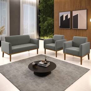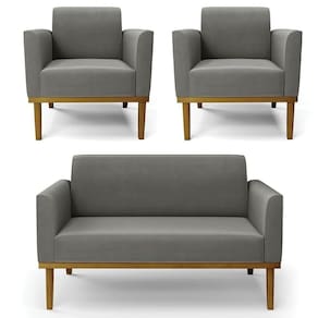 O Sofá Namoradeira e 2 Poltronas Base Madeira Castanho Maressa Suede Grafite, da Ibiza é o conjunto ideal para quem busca beleza, conforto e versatilidade. Você pode usar na sua Sala De Estar, recepção ou qualquer outro ambiente que desejar.