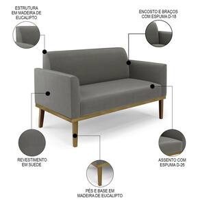 O Sofá Namoradeira e a Poltrona Decorativa são revestidos em Suede, que é fácil de limpar e valoriza o design das peças. Eles têm braços e encosto em espuma D-18 e assento em espuma D-26, que oferecem firmeza e aconchego para você relaxar. A base em madeira de eucalipto castanho é um detalhe charmoso, que dá um toque rústico e sofisticado ao conjunto. O kit tem uma estrutura resistente e suporta até 120 kg cada peça. A montagem é simples, pois as peças já vêm prontas, bastando fixar a base com os parafusos que acompanham o produto. A limpeza é prática, pois basta usar um pano limpo e levemente úmido, sem produtos abrasivos, para manter o seu kit sempre em bom estado. Hora de transformar seu ambiente com a Namoradeira 2 Lugares e a Poltrona para Sala deixando ainda mais confortável e estiloso.