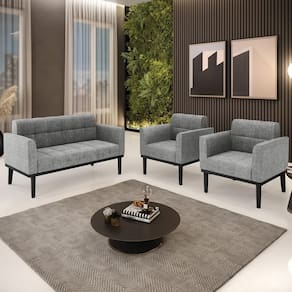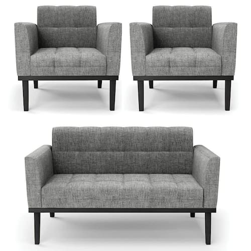 O Sofá Namoradeira e 2 Poltronas Base Madeira Preto Ana Linho Grafite, da Ibiza é o conjunto ideal para quem busca beleza, conforto e versatilidade. Você pode usar na sua Sala De Estar, recepção ou qualquer outro ambiente que desejar.