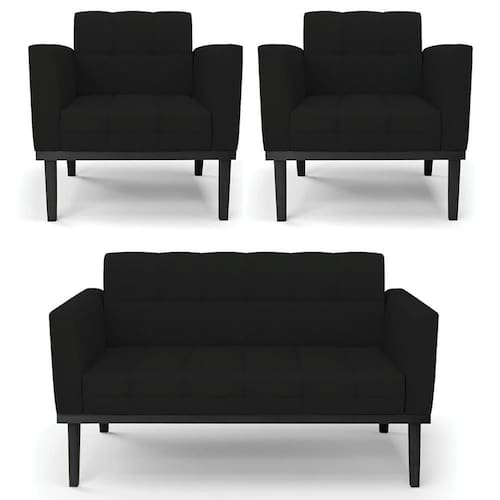 O Sofá Namoradeira e 2 Poltronas Base Madeira Preto Ana Linho Preto, da Ibiza é o conjunto ideal para quem busca beleza, conforto e versatilidade. Você pode usar na sua Sala De Estar, recepção ou qualquer outro ambiente que desejar.