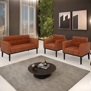 O Sofá Namoradeira e 2 Poltronas Base Madeira Preto Ana Sintético PU Nozes, da Ibiza é o conjunto ideal para quem busca beleza, conforto e versatilidade. Você pode usar na sua Sala De Estar, recepção ou qualquer outro ambiente que desejar.