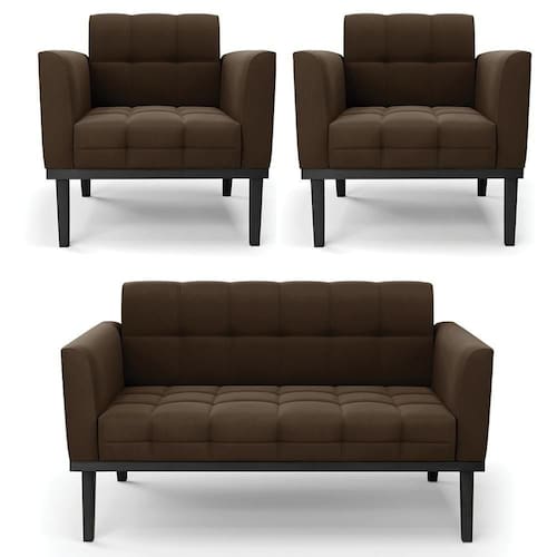 O Sofá Namoradeira e 2 Poltronas Base Madeira Preto Ana Suede Marrom, da Ibiza é o conjunto ideal para quem busca beleza, conforto e versatilidade. Você pode usar na sua Sala De Estar, recepção ou qualquer outro ambiente que desejar.