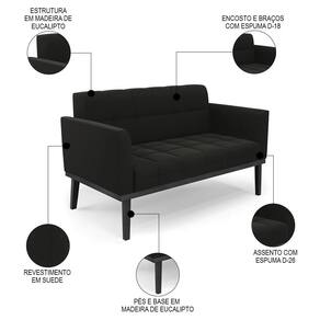 O Sofá Namoradeira e 2 Poltronas Base Madeira Preto Ana Suede Preto, da Ibiza é o conjunto ideal para quem busca beleza, conforto e versatilidade. Você pode usar na sua Sala De Estar, recepção ou qualquer outro ambiente que desejar.