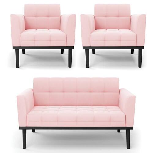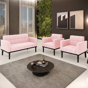 O Sofá Namoradeira e 2 Poltronas Base Madeira Preto Ana Suede Rosa Bebê, da Ibiza é o conjunto ideal para quem busca beleza, conforto e versatilidade. Você pode usar na sua Sala De Estar, recepção ou qualquer outro ambiente que desejar.