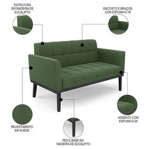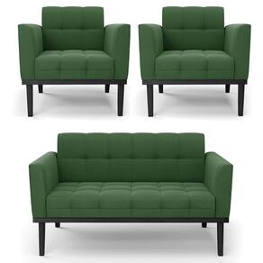 O Sofá Namoradeira e 2 Poltronas Base Madeira Preto Ana Suede Verde, da Ibiza é o conjunto ideal para quem busca beleza, conforto e versatilidade. Você pode usar na sua Sala De Estar, recepção ou qualquer outro ambiente que desejar.