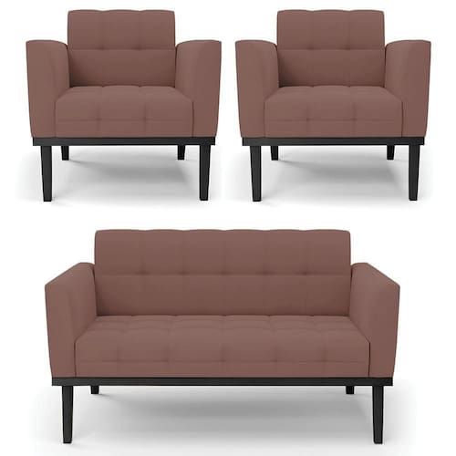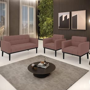 O Sofá Namoradeira e 2 Poltronas Base Madeira Preto Ana Veludo Rosê, da Ibiza é o conjunto ideal para quem busca beleza, conforto e versatilidade. Você pode usar na sua Sala De Estar, recepção ou qualquer outro ambiente que desejar.