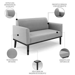 O Sofá Namoradeira e a Poltrona Decorativa são revestidos em Suede, que é fácil de limpar e valoriza o design das peças. Eles têm braços e encosto em espuma D-18 e assento em espuma D-26, que oferecem firmeza e aconchego para você relaxar. A base em madeira de eucalipto Preto é um detalhe charmoso, que dá um toque rústico e sofisticado ao conjunto. O kit tem uma estrutura resistente e suporta até 120 kg cada peça. A montagem é simples, pois as peças já vêm prontas, bastando fixar a base com os parafusos que acompanham o produto. A limpeza é prática, pois basta usar um pano limpo e levemente úmido, sem produtos abrasivos, para manter o seu kit sempre em bom estado. Hora de transformar seu ambiente com a Namoradeira 2 Lugares e a Poltrona para Sala deixando ainda mais confortável e estiloso.