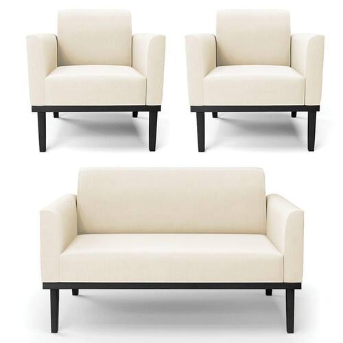 O Sofá Namoradeira e 2 Poltronas Base Madeira Preto Maressa Veludo Bege, da Ibiza é o conjunto ideal para quem busca beleza, conforto e versatilidade. Você pode usar na sua Sala De Estar, recepção ou qualquer outro ambiente que desejar.