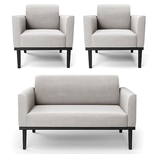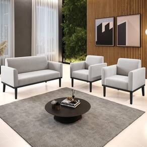 O Sofá Namoradeira e 2 Poltronas Base Madeira Preto Maressa Veludo Cinza, da Ibiza é o conjunto ideal para quem busca beleza, conforto e versatilidade. Você pode usar na sua Sala De Estar, recepção ou qualquer outro ambiente que desejar.