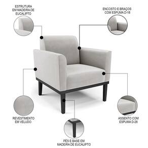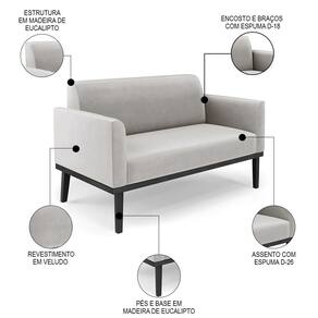 O Sofá Namoradeira e a Poltrona Decorativa são revestidos em Veludo, que é fácil de limpar e valoriza o design das peças. Eles têm braços e encosto em espuma D-18 e assento em espuma D-26, que oferecem firmeza e aconchego para você relaxar. A base em madeira de eucalipto Preto é um detalhe charmoso, que dá um toque rústico e sofisticado ao conjunto. O kit tem uma estrutura resistente e suporta até 120 kg cada peça. A montagem é simples, pois as peças já vêm prontas, bastando fixar a base com os parafusos que acompanham o produto. A limpeza é prática, pois basta usar um pano limpo e levemente úmido, sem produtos abrasivos, para manter o seu kit sempre em bom estado. Hora de transformar seu ambiente com a Namoradeira 2 Lugares e a Poltrona para Sala deixando ainda mais confortável e estiloso.