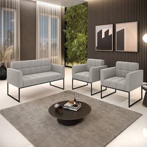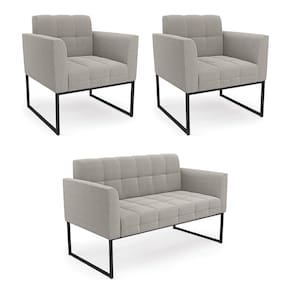 O Sofá Namoradeira e 2 Poltronas Elisa é uma mobília que combina elegância, conforto e durabilidade. Ele tem um design retrô e sofisticado, com Base Industrial Preto e revestimento em tecido Bouclê Cinza, que harmonizam com qualquer ambiente. Ele é ideal para sala de estar, recepções, escritórios, cozinhas ou qualquer outro espaço que você queira decorar com estilo e bom gosto. Ele tem uma estrutura em madeira de reflorestamento eucalipto, que garante a resistência e a sustentabilidade do produto. Ele suporta até 180 kg de peso, podendo ser utilizada por pessoas de diferentes biotipos. Ele tem um acabamento reforçado e espuma de qualidade D23, que oferece maciez e aconchego. Ele contém detalhes de costura no encosto e assento, resultando em um acabamento impecável, conferindo muito mais valor e elegância ao produto. O Sofá Namoradeira e 2 Poltronas Elisa é um móvel de alta qualidade, beleza e funcionalidade. Ele é fácil de transportar, pois tem um peso leve e um tamanho compacto. O Sofá Namoradeira e 2 Poltronas Elisa é um produto que vai fazer a diferença na sua decoração e no seu bem-estar. Ele vai trazer charme, conforto e durabilidade para o seu ambiente. Aproveite essa oferta e leve para casa um Sofá Namoradeira e 2 Poltronas de qualidade por um preço incrível. Essa é a sua chance de ter um Sofá Namoradeira e 2 Poltronas maravilhoso por um preço imperdível. Corra e garanta o seu antes que acabe o estoque!