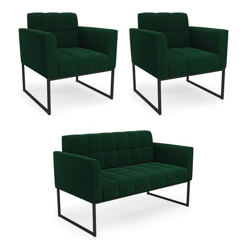 Sofá Namoradeira e 2 Poltronas Industrial Pto Elisa Bouclê D03 - D`Rossi - Verde