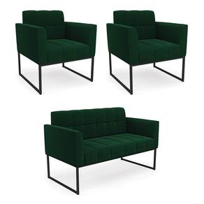 O Sofá Namoradeira e 2 Poltronas Elisa é uma mobília que combina elegância, conforto e durabilidade. Ele tem um design retrô e sofisticado, com Base Industrial Preto e revestimento em tecido Bouclê Verde, que harmonizam com qualquer ambiente. Ele é ideal para sala de estar, recepções, escritórios, cozinhas ou qualquer outro espaço que você queira decorar com estilo e bom gosto. Ele tem uma estrutura em madeira de reflorestamento eucalipto, que garante a resistência e a sustentabilidade do produto. Ele suporta até 180 kg de peso, podendo ser utilizada por pessoas de diferentes biotipos. Ele tem um acabamento reforçado e espuma de qualidade D23, que oferece maciez e aconchego. Ele contém detalhes de costura no encosto e assento, resultando em um acabamento impecável, conferindo muito mais valor e elegância ao produto. O Sofá Namoradeira e 2 Poltronas Elisa é um móvel de alta qualidade, beleza e funcionalidade. Ele é fácil de transportar, pois tem um peso leve e um tamanho compacto. O Sofá Namoradeira e 2 Poltronas Elisa é um produto que vai fazer a diferença na sua decoração e no seu bem-estar. Ele vai trazer charme, conforto e durabilidade para o seu ambiente. Aproveite essa oferta e leve para casa um Sofá Namoradeira e 2 Poltronas de qualidade por um preço incrível. Essa é a sua chance de ter um Sofá Namoradeira e 2 Poltronas maravilhoso por um preço imperdível. Corra e garanta o seu antes que acabe o estoque!
