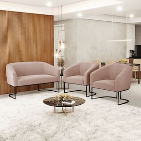 Tem novidades chegando por aqui! Olha só essa nossa inéditaNamoradeira e 2 Poltronas Stella Bouclê. Sim, as melhores opções em Namoradeira estão aqui! A Namoradeira e 2 Poltronas Stella Bouclê é para todas as ocasiões, é ideal para você relaxar, assistir tv ou ler um livro, mantendo-o confortável ao longo do dia! Um estofado versátil, que foge do convencional pelo seu design e tecido luxuoso. Seu formato curvo, marcante e sofisticado, oferece conforto de forma excepcional, com aquela sensação de abraço, que deixa o coração quentinho! Desenvolvida com atenção aos detalhes, para atender todas suas expectativas e necessidades. Seu aspecto arredondado e anatômico, possibilita que a postura fique sempre alinhada, mantendo a coluna na posição correta. Ela dispõe de um acabamento impecável, revestida em Bouclê em tom Rosê, um tecido maleável que além de ser muito bonito, é a grande tendência do momento, por ser uma lã mais refinada, quente, com toque suave e agradável, semelhante à textura natural da ovelha. Contém uma estrutura robusta, sua sustentação é dada pela Base Industrial no tom Dourado, que garantem mais segurança e firmeza ao sentar-se. Já o enchimento é feito em espuma D-23 no encosto e assento, garantindo maior conforto ao usuário. Ah! Vale a pena lembrar que a Namoradeira e 2 Poltronas Stella Bouclê, foi produzida em quantidades limitadas, para aqueles que procuram criar um visual diferenciado e exclusivo. Então, não deixe de aproveitar esse lançamento, hem! Leve a sua agora mesmo.