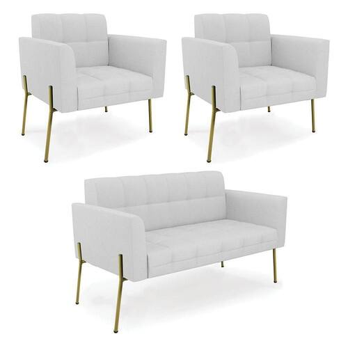 Você irá receber: 01 Sofá Namoradeira e 02 Poltronas - Entregue em: 03 Volumes