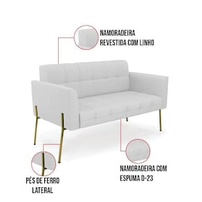 Você gosta de colecionar vários momentos memoráveis com sua família e amigos? Que tal recebê-los, com móveis de altíssima qualidade que só a D'Rossi tem? O Sofá Sofá Namoradeira e Poltrona Elisa é adequado para você! Seu design retrô é a grande tendência do momento. Pode ser utilizado em diversos espaços da casa, em salas, hall de entrada, quartos, cozinhas, varanda, sacada, escritório, dentre outros. Contém as seguintes características: A estrutura é feita Madeira de Eucalipto 100% de reflorestamento, e o Pé de Ferro Fixa Preto, além de ser resistente e durável, suporta em média até 120 kg. Assento, encosto e braços, contém enchimento de espuma D-23 e é estofada em tecido Linho, no tom Cinza, que oferece muito conforto e resistência ao sentar, com aquela sensação de maciez e aconchego. Possui também, detalhes de costura no encosto e assento, resultando em um acabamento impecável, conferindo muito mais valor e elegância ao seu espaço. Para complementar a decoração com esse lindo Kit Sofá Namoradeira e Poltrona Elisa, a dica é utilizar mantas, almofadas ou vasinho de flor. E pronto, seu cantinho estará perfeito para descansar e relaxar! Aqui, você encontra várias opções, para que seus amigos e familiares se sintam acolhidos. Garanta já seu Kit Sofá Namoradeira e 2 Poltronas Elisa.
