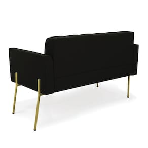 Sofá Namoradeira E 2 Poltronas Pé De Ferro Dourado Elisa Suede D03 - D`rossi Cor Preto - Blush