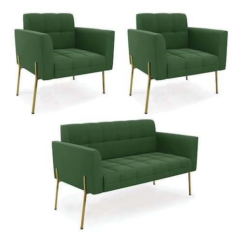Você gosta de colecionar vários momentos memoráveis com sua família e amigos? Que tal recebê-los, com móveis de altíssima qualidade que só a D'Rossi tem? O Sofá Sofá Namoradeira e Poltrona Elisa é adequado para você! Seu design retrô é a grande tendência do momento. Pode ser utilizado em diversos espaços da casa, em salas, hall de entrada, quartos, cozinhas, varanda, sacada, escritório, dentre outros. Contém as seguintes características: A estrutura é feita Madeira de Eucalipto 100% de reflorestamento,Pés de Ferro Dourado que além de ser resistente e durável, suporta em média até 120 kg. Assento, encosto e braços, contém enchimento de espuma D-23 e é estofada em tecido Suede, que oferece muito conforto e resistência ao sentar, com aquela sensação de maciez e aconchego. Possui também, detalhes de costura no encosto e assento, resultando em um acabamento impecável, conferindo muito mais valor e elegância ao seu espaço. Para complementar a decoração com esse lindo Kit Sofá Namoradeira e Poltrona Elisa, a dica é utilizar mantas, almofadas ou vasinho de flor. E pronto, seu cantinho estará perfeito para descansar e relaxar! Aqui, você encontra várias opções, para que seus amigos e familiares se sintam acolhidos. Garanta já seu Kit Sofá Namoradeira e 2 Poltronas Elisa.