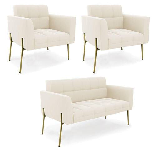 Você irá receber: 01 Sofá Namoradeira e 02 Poltronas - Entregue em: 03 Volumes