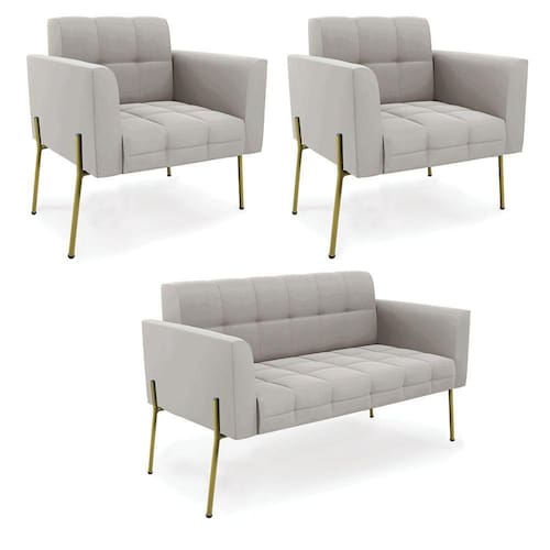 Você irá receber: 01 Sofá Namoradeira e 02 Poltronas - Entregue em: 03 Volumes