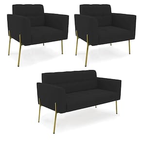 Sofá Namoradeira E 2 Poltronas Pé De Ferro Dourado Elisa Veludo D03 - D'rossi Cor Preto