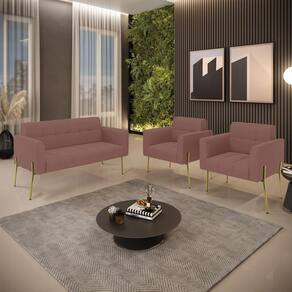 Você gosta de colecionar vários momentos memoráveis com sua família e amigos? Que tal recebê-los, com móveis de altíssima qualidade que só a D'Rossi tem? O Sofá Sofá Namoradeira e Poltrona Elisa é adequado para você! Seu design retrô é a grande tendência do momento. Pode ser utilizado em diversos espaços da casa, em salas, hall de entrada, quartos, cozinhas, varanda, sacada, escritório, dentre outros. Contém as seguintes características: A estrutura é feita Madeira de Eucalipto 100% de reflorestamento, e o Pé de Ferro Fixa Preto, além de ser resistente e durável, suporta em média até 120 kg. Assento, encosto e braços, contém enchimento de espuma D-23 e é estofada em tecido Veludo, que oferece muito conforto e resistência ao sentar, com aquela sensação de maciez e aconchego. Possui também, detalhes de costura no encosto e assento, resultando em um acabamento impecável, conferindo muito mais valor e elegância ao seu espaço. Para complementar a decoração com esse lindo Kit Sofá Namoradeira e Poltrona Elisa, a dica é utilizar mantas, almofadas ou vasinho de flor. E pronto, seu cantinho estará perfeito para descansar e relaxar! Aqui, você encontra várias opções, para que seus amigos e familiares se sintam acolhidos. Garanta já seu Kit Sofá Namoradeira e 2 Poltronas Elisa.