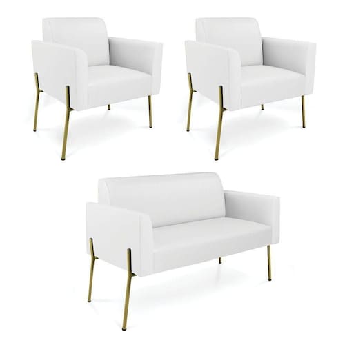 Todo mundo gosta de um ambiente bem decorado, e se for novidade melhor ainda não é mesmo? A D'Rossi, além de entregar beleza, qualidade e confiança aos clientes, ela dispõe das melhores opções em produtos, disponíveis no mercado! Portanto, se você quer um produto sofisticado, opte pelo Sofá Namoradeira e 2 Poltronas. Ele possui um design lindo e sofisticado, com pés de Ferro Lateral Dourado e revestimento em tecido Corino, que harmonizam com qualquer ambiente. Esta mobília fica perfeita na sala de estar, recepções, mesa de jantar ou qualquer outro espaço que você queira decorar com estilo e bom gosto. Ela contém uma estrutura em madeira de reflorestamento eucalipto, que garante a resistência e a sustentabilidade do produto. Ela suporta até 120 kg de peso, podendo ser utilizada por pessoas de diferentes biotipos. Ela tem um acabamento reforçado e espuma de qualidade D-23, garantindo flexibilidade e conforto ao usuário. O Sofá Namoradeira e 2 Poltronas Marisa é um produto de alta qualidade, beleza e funcionalidade. Ele é fácil de transportar, pois tem um peso leve e um tamanho compacto. O Sofá Namoradeira e 2 Poltronas Marisa é ideal, para dar aquele realce que seu ambiente precisa. Tenho certeza que esse móvel é a melhor compra que você irá fazer. Garanta já seu Sofá Namoradeira e 2 Poltronas Marisa e se acomode da melhor maneira possível!Dimensões do Sofá Namoradeira: Altura total: 81 cm Largura total: 114 cm Profundidade total: 64 cm Altura do encosto: 36 cm Largura do assento: 96 cm Profundidade do assento: 48 cm Altura do chão ao assento: 45 cm Espessura do assento: 18 cm Tamanho dos pés: 30 cm Espessura do braço: 9 cm Peso: 21 kg Dimensões da Poltrona: Altura total: 81 cm Largura total: 64 cm Profundidade total: 64 cm Altura do encosto: 36 cm Largura do assento: 47 cm Profundidade do assento: 48 cm Altura do chão ao assento: 45 cm Espessura do assento: 18 cm Tamanho dos pés: 30 cm Espessura do braço: 9 cm Peso: 14 kg Especificações do Produto Estrutura: Madeira Eucalipto Espuma: D-23 Tecido: Veludo Tipo de pés: Pés de Ferro Dourado Peso suportado: Até 120 Kg Garantia: 90 dias contra defeito de fabricação Montagem: O produto vai montado, apenas parafusar a base Instruções de limpeza: Utilizar um pano limpo e levemente úmido Você irá receber: 01 Sofá Namoradeira e 02 Poltronas - Entregue em 03 Volumes