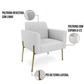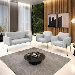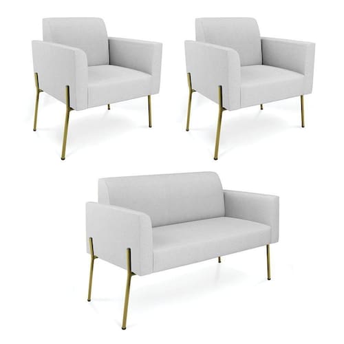 Sofá Namoradeira E 2 Poltronas Pé De Ferro Dourado Marisa Linho D03 - D`rossi Cor Cinza - Blush