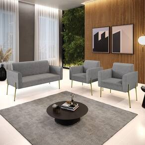 Todo mundo gosta de um ambiente bem decorado, e se for novidade melhor ainda não é mesmo? A D'Rossi, além de entregar beleza, qualidade e confiança aos clientes, ela dispõe das melhores opções em produtos, disponíveis no mercado! Portanto, se você quer um produto sofisticado, opte pelo Sofá Namoradeira e 2 Poltronas. Ele possui um design lindo e sofisticado, com pés de Ferro Lateral Dourado e revestimento em tecido Linho Grafite, que harmonizam com qualquer ambiente. Esta mobília fica perfeita na sala de estar, recepções, mesa de jantar ou qualquer outro espaço que você queira decorar com estilo e bom gosto. Ela contém uma estrutura em madeira de reflorestamento eucalipto, que garante a resistência e a sustentabilidade do produto. Ela suporta até 120 kg de peso, podendo ser utilizada por pessoas de diferentes biotipos. Ela tem um acabamento reforçado e espuma de qualidade D-23, garantindo flexibilidade e conforto ao usuário. O Sofá Namoradeira e 2 Poltronas Marisa é um produto de alta qualidade, beleza e funcionalidade. Ele é fácil de transportar, pois tem um peso leve e um tamanho compacto. O Sofá Namoradeira e 2 Poltronas Marisa é ideal, para dar aquele realce que seu ambiente precisa. Tenho certeza que esse móvel é a melhor compra que você irá fazer. Garanta já seu Sofá Namoradeira e 2 Poltronas Marisa e se acomode da melhor maneira possível!Dimensões do Sofá Namoradeira: Altura total: 81 cm Largura total: 114 cm Profundidade total: 64 cm Altura do encosto: 36 cm Largura do assento: 96 cm Profundidade do assento: 48 cm Altura do chão ao assento: 45 cm Espessura do assento: 18 cm Tamanho dos pés: 30 cm Espessura do braço: 9 cm Peso: 21 kg Dimensões da Poltrona: Altura total: 81 cm Largura total: 64 cm Profundidade total: 64 cm Altura do encosto: 36 cm Largura do assento: 47 cm Profundidade do assento: 48 cm Altura do chão ao assento: 45 cm Espessura do assento: 18 cm Tamanho dos pés: 30 cm Espessura do braço: 9 cm Peso: 14 kg Especificações do Produto Estrutura: Madeira Eucalipto Espuma: D-23 Tecido: Suede Tipo de pés: Pés de Ferro Dourado Peso suportado: Até 120 Kg Garantia: 90 dias contra defeito de fabricação Montagem: O produto vai montado, apenas parafusar a base Instruções de limpeza: Utilizar um pano limpo e levemente úmido Você irá receber: 01 Sofá Namoradeira e 02 Poltronas - Entregue em 03 Volumes