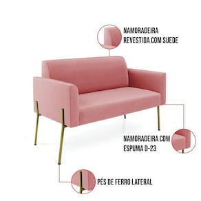 Todo mundo gosta de um ambiente bem decorado, e se for novidade melhor ainda não é mesmo? A D'Rossi, além de entregar beleza, qualidade e confiança aos clientes, ela dispõe das melhores opções em produtos, disponíveis no mercado! Portanto, se você quer um produto sofisticado, opte pelo Sofá Namoradeira e Poltrona. Ele possui um design lindo e sofisticado, com pés de Ferro Lateral Dourado e revestimento em tecido Suede Rosê, que harmonizam com qualquer ambiente. Esta mobília fica perfeita na sala de estar, recepções, mesa de jantar ou qualquer outro espaço que você queira decorar com estilo e bom gosto. Ela contém uma estrutura em madeira de reflorestamento eucalipto, que garante a resistência e a sustentabilidade do produto. Ela suporta até 120 kg de peso, podendo ser utilizada por pessoas de diferentes biotipos. Ela tem um acabamento reforçado e espuma de qualidade D-23, garantindo flexibilidade e conforto ao usuário. O Sofá Namoradeira e Poltrona Marisa é um produto de alta qualidade, beleza e funcionalidade. Ele é fácil de transportar, pois tem um peso leve e um tamanho compacto. O Sofá Namoradeira e 2 Poltronas Marisa é ideal, para dar aquele realce que seu ambiente precisa. Tenho certeza que esse móvel é a melhor compra que você irá fazer. Garanta já seu Sofá Namoradeira e 2 Poltronas Marisa e se acomode da melhor maneira possível! Dimensões do Sofá Namoradeira: Altura total: 81 cm Largura total: 114 cm Profundidade total: 64 cm Altura do encosto: 36 cm Largura do assento: 96 cm Profundidade do assento: 48 cm Altura do chão ao assento: 45 cm Espessura do assento: 18 cm Tamanho dos pés: 30 cm Espessura do braço: 9 cm Peso: 21 kg Dimensões da Poltrona: Altura total: 81 cm Largura total: 64 cm Profundidade total: 64 cm Altura do encosto: 36 cm Largura do assento: 47 cm Profundidade do assento: 48 cm Altura do chão ao assento: 45 cm Espessura do assento: 18 cm Tamanho dos pés: 30 cm Espessura do braço: 9 cm Peso: 14 kg Especificações do Produto Estrutura: Madeira Eucalipto Espuma: D-23 Tecido: Suede Tipo de pés: Pés de Ferro Dourado Peso suportado: Até 120 Kg Garantia: 90 dias contra defeito de fabricação Montagem: O produto vai montado, apenas parafusar a base Instruções de limpeza: Utilizar um pano limpo e levemente úmido Você irá receber: 01 Sofá Namoradeira e 02 Poltronas - Entregue em 03 Volumes