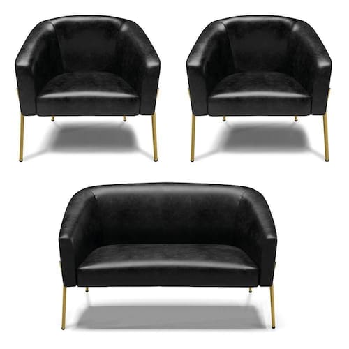 O Sofá Namoradeira 2 lugares com 2 Poltronas Stella é uma peça que combina elegância, conforto e durabilidade. Este conjunto tem um design moderno e sofisticado, com pés de ferro lateral dourado e revestimento em tecido Corano Preto, que harmonizam com qualquer ambiente. Ele é ideal para sala de estar, recepções, mesa de jantar ou qualquer outro espaço que você queira decorar com estilo e bom gosto. Ele tem uma estrutura em madeira de reflorestamento eucalipto, que garante a resistência e a sustentabilidade do produto. Ele suporta até 120 kg de peso, podendo ser utilizado por pessoas de diferentes biotipos. Ele tem um acabamento reforçado e espuma de qualidade D23, que oferece maciez e aconchego. Tem pés em aço carbono e pintura eletrostática, que protegem o produto contra corrosão e desgaste. Ele tem assento com persintas elásticas, que proporcionam flexibilidade e conforto. O kit Stella é um produto de alta qualidade, beleza e funcionalidade. Ele é fácil de transportar, pois tem um peso leve e um tamanho compacto. O Sofá Namoradeira 2 lugares com Poltrona Stella é um produto que vai fazer a diferença na sua decoração e no seu bem-estar. Ele vai trazer charme, conforto e durabilidade para o seu ambiente. Aproveite essa oferta e leve para casa um Sofá Namoradeira 2 lugares com Poltrona qualidade por um preço incrível. Essa é a sua chance de ter um kit maravilhoso por um preço imperdível. Corra e garanta seu Sofá Namoradeira 2 lugares com 2 Poltronas antes que acabe o estoque!