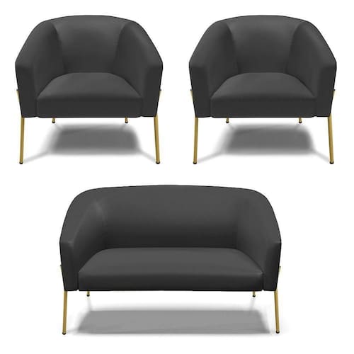 O Sofá Namoradeira 2 lugares com 2 Poltronas Stella é uma peça que combina elegância, conforto e durabilidade. Este conjunto tem um design moderno e sofisticado, com pés de ferro lateral dourado e revestimento em tecido Corino Preto, que harmonizam com qualquer ambiente. Ele é ideal para sala de estar, recepções, mesa de jantar ou qualquer outro espaço que você queira decorar com estilo e bom gosto. Ele tem uma estrutura em madeira de reflorestamento eucalipto, que garante a resistência e a sustentabilidade do produto. Ele suporta até 120 kg de peso, podendo ser utilizado por pessoas de diferentes biotipos. Ele tem um acabamento reforçado e espuma de qualidade D23, que oferece maciez e aconchego. Tem pés em aço carbono e pintura eletrostática, que protegem o produto contra corrosão e desgaste. Ele tem assento com persintas elásticas, que proporcionam flexibilidade e conforto. O kit Stella é um produto de alta qualidade, beleza e funcionalidade. Ele é fácil de transportar, pois tem um peso leve e um tamanho compacto. O Sofá Namoradeira 2 lugares com Poltrona Stella é um produto que vai fazer a diferença na sua decoração e no seu bem-estar. Ele vai trazer charme, conforto e durabilidade para o seu ambiente. Aproveite essa oferta e leve para casa um Sofá Namoradeira 2 lugares com Poltrona qualidade por um preço incrível. Essa é a sua chance de ter um kit maravilhoso por um preço imperdível. Corra e garanta seu Sofá Namoradeira 2 lugares com 2 Poltronas antes que acabe o estoque!