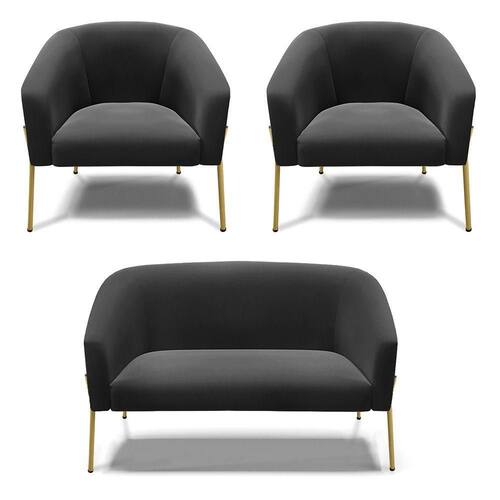 Você irá receber: 01 Sofá Namoradeira e 02 Poltronas - Entregue em: 02 Volumes