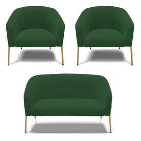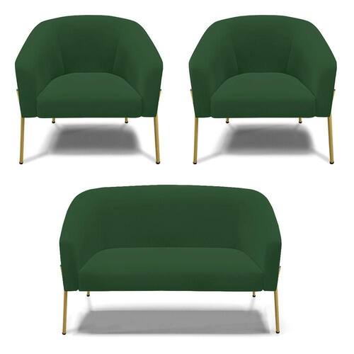 O Sofá Namoradeira 2 lugares com 2 Poltronas Stella é uma peça que combina elegância, conforto e durabilidade. Este conjunto tem um design moderno e sofisticado, com pés de ferro lateral dourado e revestimento em tecido Veludo Verde, que harmonizam com qualquer ambiente. Ele é ideal para sala de estar, recepções, mesa de jantar ou qualquer outro espaço que você queira decorar com estilo e bom gosto. Ele tem uma estrutura em madeira de reflorestamento eucalipto, que garante a resistência e a sustentabilidade do produto. Ele suporta até 120 kg de peso, podendo ser utilizado por pessoas de diferentes biotipos. Ele tem um acabamento reforçado e espuma de qualidade D23, que oferece maciez e aconchego. Tem pés em aço carbono e pintura eletrostática, que protegem o produto contra corrosão e desgaste. Ele tem assento com persintas elásticas, que proporcionam flexibilidade e conforto. O kit Stella é um produto de alta qualidade, beleza e funcionalidade. Ele é fácil de transportar, pois tem um peso leve e um tamanho compacto. O Sofá Namoradeira 2 lugares com Poltrona Stella é um produto que vai fazer a diferença na sua decoração e no seu bem-estar. Ele vai trazer charme, conforto e durabilidade para o seu ambiente. Aproveite essa oferta e leve para casa um Sofá Namoradeira 2 lugares com Poltrona qualidade por um preço incrível. Essa é a sua chance de ter um kit maravilhoso por um preço imperdível. Corra e garanta seu Sofá Namoradeira 2 lugares com 2 Poltronas antes que acabe o estoque!