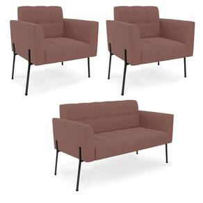 Você gosta de colecionar vários momentos memoráveis com sua família e amigos? Que tal recebê-los, com móveis de altíssima qualidade que só a D'Rossi tem? O Sofá Sofá Namoradeira e Poltrona Elisa é adequado para você! Seu design retrô é a grande tendência do momento. Pode ser utilizado em diversos espaços da casa, em salas, hall de entrada, quartos, cozinhas, varanda, sacada, escritório, dentre outros. Contém as seguintes características: A estrutura é feita Madeira de Eucalipto 100% de reflorestamento, e o Pé de Ferro Fixa Preto, além de ser resistente e durável, suporta em média até 120 kg. Assento, encosto e braços, contém enchimento de espuma D-23 e é estofada em tecido Veludo, na cor Rosê, que oferece muito conforto e resistência ao sentar, com aquela sensação de maciez e aconchego. Possui também, detalhes de costura no encosto e assento, resultando em um acabamento impecável, conferindo muito mais valor e elegância ao seu espaço. Para complementar a decoração com esse lindo Kit Sofá Namoradeira e Poltrona Elisa, a dica é utilizar mantas, almofadas ou vasinho de flor. E pronto, seu cantinho estará perfeito para descansar e relaxar! Aqui, você encontra várias opções, para que seus amigos e familiares se sintam acolhidos. Garanta já seu Kit Sofá Namoradeira e 2 Poltronas Elisa.