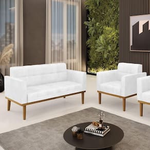 Você gosta de colecionar vários momentos memoráveis com sua família e amigos? Que tal recebê-los, com móveis de altíssima qualidade que só a D'Rossi tem? O Sofá Sofá Namoradeira e Poltrona Elisa é adequado para você! Seu design retrô é a grande tendência do momento. Pode ser utilizado em diversos espaços da casa, em salas, hall de entrada, quartos, cozinhas, varanda, sacada, escritório, dentre outros. Contém as seguintes características: A estrutura é feita de madeira de Eucalipto 100% de reflorestamento, e a Base de Madeira Fixa Castanho, além de ser resistente e durável, suporta em média até 120 kg. Assento, encosto e braços, contém enchimento de espuma D-23 e é estofada em tecido Corano, que oferece muito conforto e resistência ao sentar, com aquela sensação de maciez e aconchego. Possui também, detalhes de costura no encosto e assento, resultando em um acabamento impecável, conferindo muito mais valor e elegância ao seu espaço. Para complementar a decoração com esse lindo kit Sofá Sofá Namoradeira e Poltrona Elisa, a dica é utilizar mantas, almofadas ou vasinho de flor. E pronto, seu cantinho estará perfeito para descansar e relaxar! Aqui, você encontra várias opções, para que seus amigos e familiares se sintam acolhidos. Garanta já seu kit Sofá Sofá Namoradeira e Poltrona Elisa.