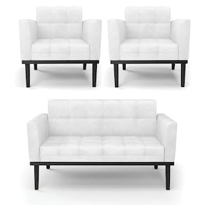 Você gosta de colecionar vários momentos memoráveis com sua família e amigos? Que tal recebê-los, com móveis de altíssima qualidade que só a D'Rossi tem? O Sofá Sofá Namoradeira e Poltrona Elisa é adequado para você! Seu design retrô é a grande tendência do momento. Pode ser utilizado em diversos espaços da casa, em salas, hall de entrada, quartos, cozinhas, varanda, sacada, escritório, dentre outros. Contém as seguintes características: A estrutura é feita de madeira de Eucalipto 100% de reflorestamento, e a Base de Madeira Fixa Preto, além de ser resistente e durável, suporta em média até 120 kg. Assento, encosto e braços, contém enchimento de espuma D-23 e é estofada em tecido Corano, que oferece muito conforto e resistência ao sentar, com aquela sensação de maciez e aconchego. Possui também, detalhes de costura no encosto e assento, resultando em um acabamento impecável, conferindo muito mais valor e elegância ao seu espaço. Para complementar a decoração com esse lindo Kit Sofá Namoradeira e Poltrona Elisa, a dica é utilizar mantas, almofadas ou vasinho de flor. E pronto, seu cantinho estará perfeito para descansar e relaxar! Aqui, você encontra várias opções, para que seus amigos e familiares se sintam acolhidos. Garanta já seu Kit Sofá Namoradeira e Poltrona Elisa.