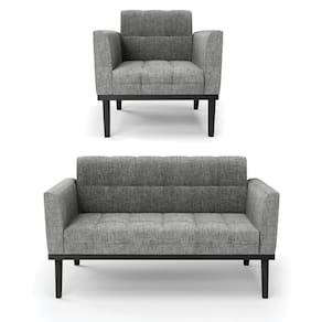Você gosta de colecionar vários momentos memoráveis com sua família e amigos? Que tal recebê-los, com móveis de altíssima qualidade que só a D'Rossi tem? O Sofá Sofá Namoradeira e Poltrona Elisa é adequado para você! Seu design retrô é a grande tendência do momento. Pode ser utilizado em diversos espaços da casa, em salas, hall de entrada, quartos, cozinhas, varanda, sacada, escritório, dentre outros. Contém as seguintes características: A estrutura é feita de madeira de Eucalipto 100% de reflorestamento, e a Base de Madeira Fixa Preto, além de ser resistente e durável, suporta em média até 120 kg. Assento, encosto e braços, contém enchimento de espuma D-23 e é estofada em tecido Linho, no tom Grafite, que oferece muito conforto e resistência ao sentar, com aquela sensação de maciez e aconchego. Possui também, detalhes de costura no encosto e assento, resultando em um acabamento impecável, conferindo muito mais valor e elegância ao seu espaço. Para complementar a decoração com esse lindo Kit Sofá Namoradeira e Poltrona Elisa, a dica é utilizar mantas, almofadas ou vasinho de flor. E pronto, seu cantinho estará perfeito para descansar e relaxar! Aqui, você encontra várias opções, para que seus amigos e familiares se sintam acolhidos. Garanta já seu Kit Sofá Namoradeira e Poltrona Elisa.