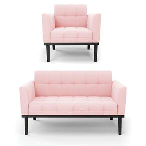 Você gosta de colecionar vários momentos memoráveis com sua família e amigos? Que tal recebê-los, com móveis de altíssima qualidade que só a D'Rossi tem? O Sofá Sofá Namoradeira e Poltrona Elisa é adequado para você! Seu design retrô é a grande tendência do momento. Pode ser utilizado em diversos espaços da casa, em salas, hall de entrada, quartos, cozinhas, varanda, sacada, escritório, dentre outros. Contém as seguintes características: A estrutura é feita de madeira de Eucalipto 100% de reflorestamento, e a Base de Madeira Fixa Preto, além de ser resistente e durável, suporta em média até 120 kg. Assento, encosto e braços, contém enchimento de espuma D-23 e é estofada em tecido Suede, no tom Rosa Bebê, que oferece muito conforto e resistência ao sentar, com aquela sensação de maciez e aconchego. Possui também, detalhes de costura no encosto e assento, resultando em um acabamento impecável, conferindo muito mais valor e elegância ao seu espaço. Para complementar a decoração com esse lindo Kit Sofá Namoradeira e Poltrona Elisa, a dica é utilizar mantas, almofadas ou vasinho de flor. E pronto, seu cantinho estará perfeito para descansar e relaxar! Aqui, você encontra várias opções, para que seus amigos e familiares se sintam acolhidos. Garanta já seu Kit Sofá Namoradeira e Poltrona Elisa.