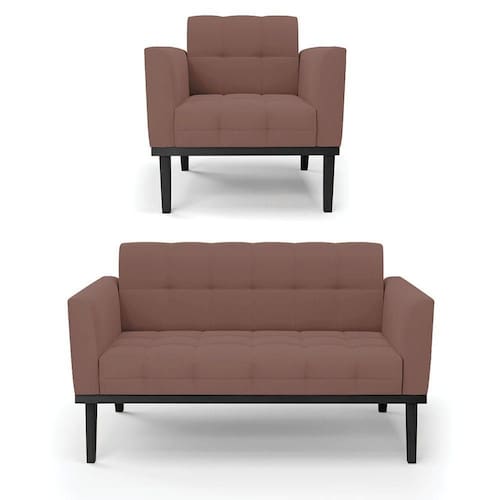 Você irá receber: 01 Sofá Namoradeira e 01 Poltrona - Entregue em: 02 Volumes