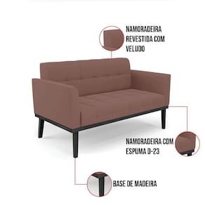 Sofá Namoradeira E Poltrona Base De Madeira Preto Elisa Veludo D03 - D`rossi Cor Rose - Blush