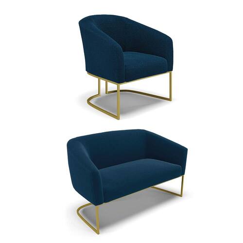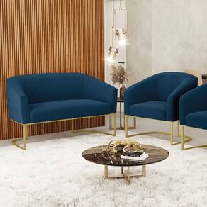 Sofá Namoradeira e Poltrona Base Industrial Dourado Stella Bouclê D03 - D`Rossi - Azul