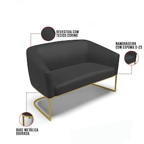 O Sofá Namoradeira 2 lugares com Potrona Stella é uma peça que combina elegância, conforto e durabilidade. Este conjunto tem um design moderno e sofisticado, com Base Industrial Dourado e revestimento em tecido Corino Preto, que harmonizam com qualquer ambiente. Ele é ideal para sala de estar, recepções, mesa de jantar ou qualquer outro espaço que você queira decorar com estilo e bom gosto. Ele tem uma estrutura em madeira de reflorestamento eucalipto, que garante a resistência e a sustentabilidade do produto. Ele suporta até 120 kg de peso, podendo ser utilizado por pessoas de diferentes biotipos. Ele tem um acabamento reforçado e espuma de qualidade D23, que oferece maciez e aconchego. Tem pés em aço carbono e pintura eletrostática, que protegem o produto contra corrosão e desgaste. Ele tem assento com persintas elásticas, que proporcionam flexibilidade e conforto. O kit Stella é um produto de alta qualidade, beleza e funcionalidade. Ele é fácil de transportar, pois tem um peso leve e um tamanho compacto. O Sofá Namoradeira 2 lugares com Potrona Stella é um produto que vai fazer a diferença na sua decoração e no seu bem-estar. Ele vai trazer charme, conforto e durabilidade para o seu ambiente. Aproveite essa oferta e leve para casa um Sofá Namoradeira 2 lugares e 2 Poltronas qualidade por um preço incrível. Essa é a sua chance de ter um kit maravilhoso por um preço imperdível. Corra e garanta seu Sofá Namoradeira 2 lugares e 2 Poltronas antes que acabe o estoque!