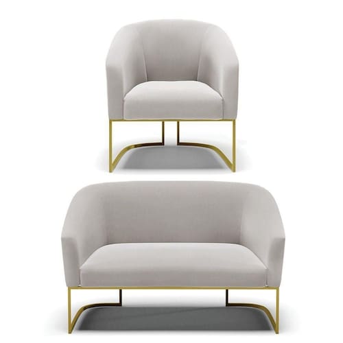 O Sofá Namoradeira 2 lugares com Poltrona Stella é uma peça que combina elegância, conforto e durabilidade. Este conjunto tem um design moderno e sofisticado, com Base Industrial Dourado e revestimento em tecido Veludo Cinza, que harmonizam com qualquer ambiente. Ele é ideal para sala de estar, recepções, mesa de jantar ou qualquer outro espaço que você queira decorar com estilo e bom gosto. Ele tem uma estrutura em madeira de reflorestamento eucalipto, que garante a resistência e a sustentabilidade do produto. Ele suporta até 120 kg de peso, podendo ser utilizado por pessoas de diferentes biotipos. Ele tem um acabamento reforçado e espuma de qualidade D23, que oferece maciez e aconchego. Tem pés em aço carbono e pintura eletrostática, que protegem o produto contra corrosão e desgaste. Ele tem assento com persintas elásticas, que proporcionam flexibilidade e conforto. O kit Stella é um produto de alta qualidade, beleza e funcionalidade. Ele é fácil de transportar, pois tem um peso leve e um tamanho compacto. O Sofá Namoradeira 2 lugares com Poltrona Stella é um produto que vai fazer a diferença na sua decoração e no seu bem-estar. Ele vai trazer charme, conforto e durabilidade para o seu ambiente. Aproveite essa oferta e leve para casa um Sofá Namoradeira 2 lugares com Poltrona qualidade por um preço incrível. Essa é a sua chance de ter um kit maravilhoso por um preço imperdível. Corra e garanta seu Sofá Namoradeira 2 lugares com Poltrona antes que acabe o estoque!