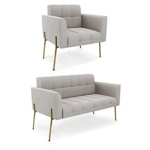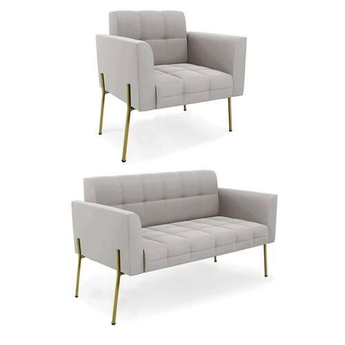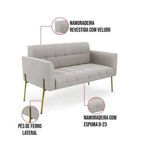 Sofá Namoradeira E Poltrona Base Pé De Ferro Dourado Elisa Veludo D03 - D`rossi Cor Cinza - Blush