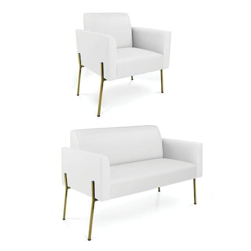 Todo mundo gosta de um ambiente bem decorado, e se for novidade melhor ainda não é mesmo? A D'Rossi, além de entregar beleza, qualidade e confiança aos clientes, ela dispõe das melhores opções em produtos, disponíveis no mercado! Portanto, se você quer um produto sofisticado, opte pelo Sofá Namoradeira e Poltrona. Ele possui um design lindo e sofisticado, com pés de Ferro Lateral Dourado e revestimento em tecido Corino Branco, que harmonizam com qualquer ambiente. Esta mobília fica perfeita na sala de estar, recepções, mesa de jantar ou qualquer outro espaço que você queira decorar com estilo e bom gosto. Ela contém uma estrutura em madeira de reflorestamento eucalipto, que garante a resistência e a sustentabilidade do produto. Ela suporta até 120 kg de peso, podendo ser utilizada por pessoas de diferentes biotipos. Ela tem um acabamento reforçado e espuma de qualidade D-23, garantindo flexibilidade e conforto ao usuário. O Sofá Namoradeira e Poltrona Marisa é um produto de alta qualidade, beleza e funcionalidade. Ele é fácil de transportar, pois tem um peso leve e um tamanho compacto. O Sofá Namoradeira e Poltrona Marisa é ideal, para dar aquele realce que seu ambiente precisa. Tenho certeza que esse móvel é a melhor compra que você irá fazer. Garanta já seu Sofá Namoradeira e Poltrona Marisa e se acomode da melhor maneira possível!Dimensões do Sofá Namoradeira: Altura total: 81 cm Largura total: 114 cm Profundidade total: 64 cm Altura do encosto: 36 cm Largura do assento: 96 cm Profundidade do assento: 48 cm Altura do chão ao assento: 45 cm Espessura do assento: 18 cm Tamanho dos pés: 30 cm Espessura do braço: 9 cm Peso: 21 kg Dimensões da Poltrona: Altura total: 81 cm Largura total: 64 cm Profundidade total: 64 cm Altura do encosto: 36 cm Largura do assento: 47 cm Profundidade do assento: 48 cm Altura do chão ao assento: 45 cm Espessura do assento: 18 cm Tamanho dos pés: 30 cm Espessura do braço: 9 cm Peso: 14 kg Especificações do Produto Estrutura: Madeira Eucalipto Espuma: D-23 Tecido: Veludo Tipo de pés: Pés de Ferro Dourado Peso suportado: Até 120 Kg Garantia: 90 dias contra defeito de fabricação Montagem: O produto vai montado, apenas parafusar a base Instruções de limpeza: Utilizar um pano limpo e levemente úmido Você irá receber: 01 Sofá Namoradeira e 01 Poltrona - Entregue em 02 Volumes