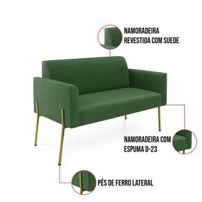 "Todo mundo gosta de um ambiente bem decorado, e se for novidade melhor ainda não é mesmo? A D'Rossi, além de entregar beleza, qualidade e confiança aos clientes, ela dispõe das melhores opções em produtos, disponíveis no mercado! Portanto, se você quer um produto sofisticado, opte pelo Sofá Namoradeira e Poltrona. Ele possui um design lindo e sofisticado, com pés de Ferro Lateral Dourado e revestimento em tecido Suede Verde, que harmonizam com qualquer ambiente. Esta mobília fica perfeita na sala de estar, recepções, mesa de jantar ou qualquer outro espaço que você queira decorar com estilo e bom gosto. Ela contém uma estrutura em madeira de reflorestamento eucalipto, que garante a resistência e a sustentabilidade do produto. Ela suporta até 120 kg de peso, podendo ser utilizada por pessoas de diferentes biotipos. Ela tem um acabamento reforçado e espuma de qualidade D-23, garantindo flexibilidade e conforto ao usuário. O Sofá Namoradeira e Poltrona Marisa é um produto de alta qualidade, beleza e funcionalidade. Ele é fácil de transportar, pois tem um peso leve e um tamanho compacto. O Sofá Namoradeira e Poltrona Marisa é ideal, para dar aquele realce que seu ambiente precisa. Tenho certeza que esse móvel é a melhor compra que você irá fazer. Garanta já seu Sofá Namoradeira e Poltrona Marisa e se acomode da melhor maneira possível!"