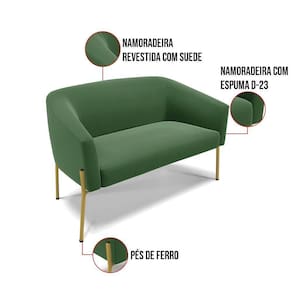 Sofá Namoradeira E Poltrona Pé De Ferro Dourado Stella Suede D03 - D'rossi Cor Verde
